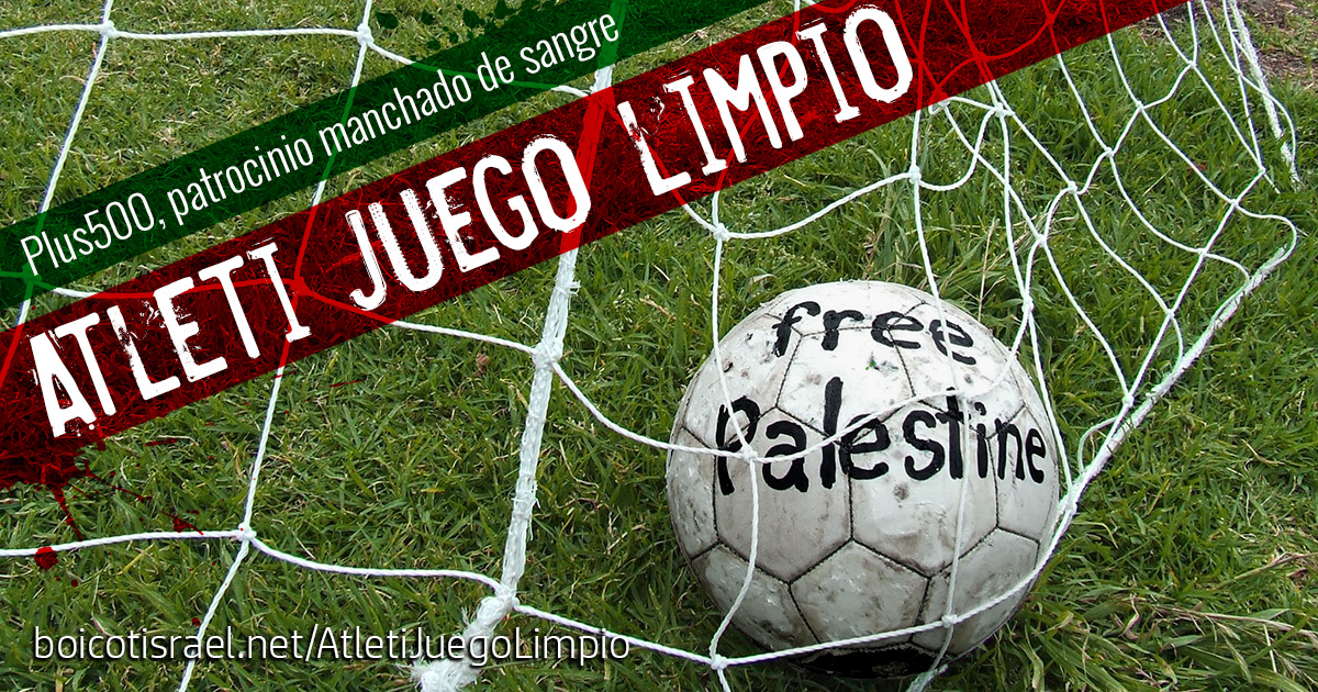 Lanzamos una campaña de envío de correos para expresar nuestra preocupación ante el contrato de patrocinio al club Atlético de Madrid por parte de la empresa israelí Plus500, que representa y fomenta, según sus propios fundadores, los intereses económicos del Estado de Israel, un Estado que mantiene desde hace más de setenta años una ocupación militar sobre territorios palestinos y que perpetúa continuas violaciones de Derechos Humanos contra el pueblo palestino.