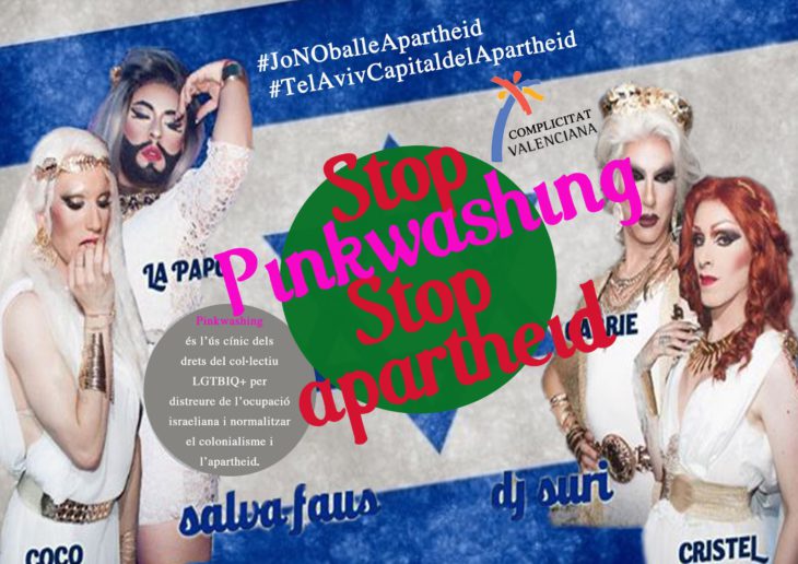 El régimen de apartheid de Israel está multiplicando los fondos para lavar su imagen a través del pinkwashing. Pero Israel es todo lo contrario a un “Estado tolerante”, puesto que es un Estado construído a través de la expulsión masiva de las personas palestinas (refugiadas desde 1948) y que ha llegado a masacrar a más de 550 menores de edad de Gaza en el verano de 2014. Israel es todo lo contrario a un “Estado tolerante” con su misma población LGTBIQ+ (son numerosos los episodios de discriminación y ni siquiera el matrimonio igualitario es legal) y es criminal con la población LGTBIQ+ palestina, como denuncian desde hace años asociaciones palestinas por los derechos LGTBIQ+ como Al Qaws, Aswat o Palestinian Queers for BDS.