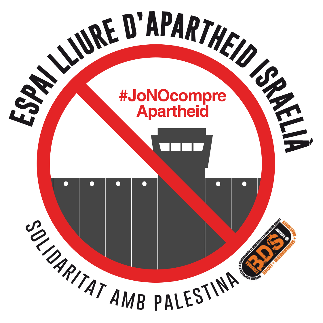 Amb el segell “Espai Lliure d’Apartheid israelià”, que s’emmarca en la campanya solidaria ciutadana global, no-violenta, antirracista i solidària de Boicot, Desinversions i Sancions (BDS) contra l’Apartheid israelià, volem crear illes de consciència política i anar consolidant Espais Lliures d’Apartheid a diferents indrets de l’Estat espanyol. La campanya BDS naix l’any 2005 dins de la societat civil palestina amb la publicació d’un manifest signat per gairebé 200 organitzacions socials, ONGs, partits i sindicats, prenent com a referent la campanya internacional de boicot contra l’Apartheid sud-africà, que va ser fonamental per acabar amb eixe règim racista.