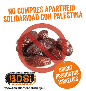 Si eres vendedor, no vendas dátiles israelíes y explica a tus clientes por qué. Si eres comprador, no los compres y exige que se ponga fin a su venta, de palabra o mediante cartas u hojas de reclamaciones: comprar este producto contribuye de una manera clara y directa al régimen de ocupación que sufre el pueblo palestino y al robo de sus recursos naturales.