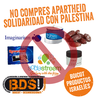 En las fiestas de fin de año, ¡consume de forma responsable y solidaria! No te hagas cómplice del apartheid israelí y de la colonización ilegal de Palestina. Desde la Red Solidaria Contra la Ocupación de Palestina (RESCOP) te proponemos que hagas boicot a estos populares productos y difundas todo lo que puedas la información sobre estas compañías. Quizás tu vecina o tu amigo no conocían esta información, ¡házsela llegar! El llamamiento al BDS que el pueblo palestino nos lanzó es un arma muy poderosa con la que contamos la sociedad civil internacional para que Israel entienda que sus constantes violaciones de los Derechos Humanos ni pasan desapercibidas, ni permitiremos que queden impunes.