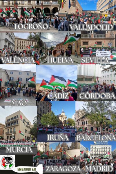 VARIAS CIUDADES SE MANIFESTARÁN ANTE LAS PRINCIPALES DELEGACIONES DEL GOBIERNO EL 9 DE SEPTIEMBRE, EXIGIENDO LA ADOPCIÓN INMEDIATA DE UN EMBARGO DE ARMAS A ISRAEL
