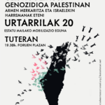 La RESCOP ha convocado una Jornada de movilización por Palestina el sábado 20 de enero a nivel estatal por el fin del genocidio en Palestina, el fin al comercio de armas y la ruptura de relaciones con Israel.