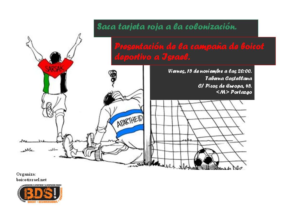 El viernes 15 de noviembre a las 20h, presentamos la campaña de boicot deportivo en la Taberna Castellana (C/ Picos de Europa 45, Portazgo):