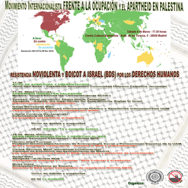 o Conferencia “70 años de la Nakba y la lucha por los derechos palestinos: La Campaña BDS-ELAI” con Hector Grand, profesor de la Universidad Autónoma de Madrid y miembro de IJAN (Red de Judíos Antisionistas)