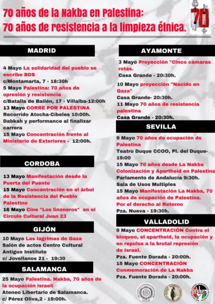 Participa en las concentraciones convocadas en tu ciudad en conmemoración del 70 aniversario de la Nakba.