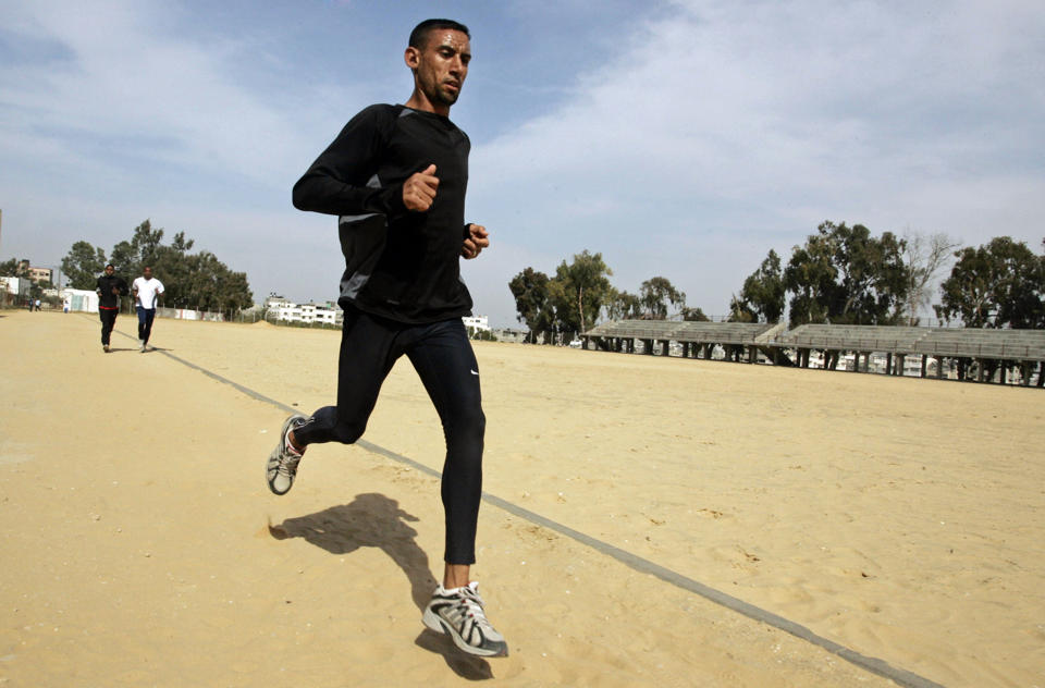 En esta foto de archivo del 5 de abril de 2008, Nader Masri se entrena en la Ciudad de Gaza. (AP Photo/Hatem Moussa/File)