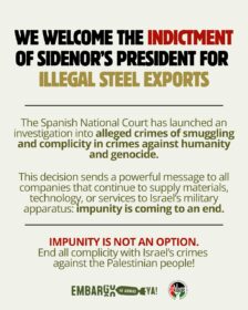 Se anuncia la imputación de tres cargos directivos de Sidenor por complicidad con el genocidio, a raíz de la denuncia de la Comunidad Palestina de Cataluña en representación de la Campaña Fin al Comercio de Armas con Israel.