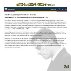 Nota de prensa: Horas antes de la Nochebuena, el Gobierno activó una cláusula de excepción al Real Decreto- Ley para autorizar una nueva compra de material militar a Israel