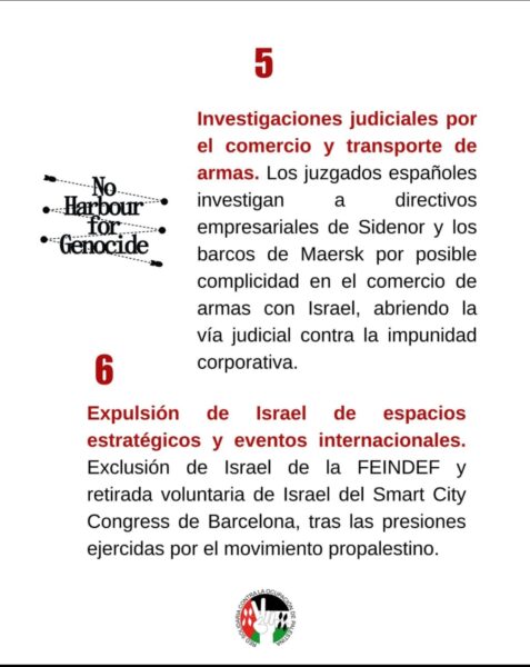 • traslada a la Autoridad Portuaria que no acoja barcos implicados en el tráfico de armas con Israel,