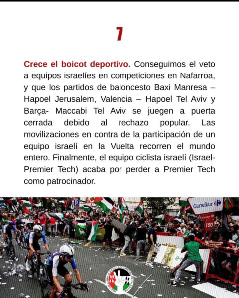 2. Fin a la persecución y criminalización de la solidaridad con Palestina, como hemos visto estas semanas en la Vuelta. Exigimos, una vez más, la derogación de la Ley Mordaza.